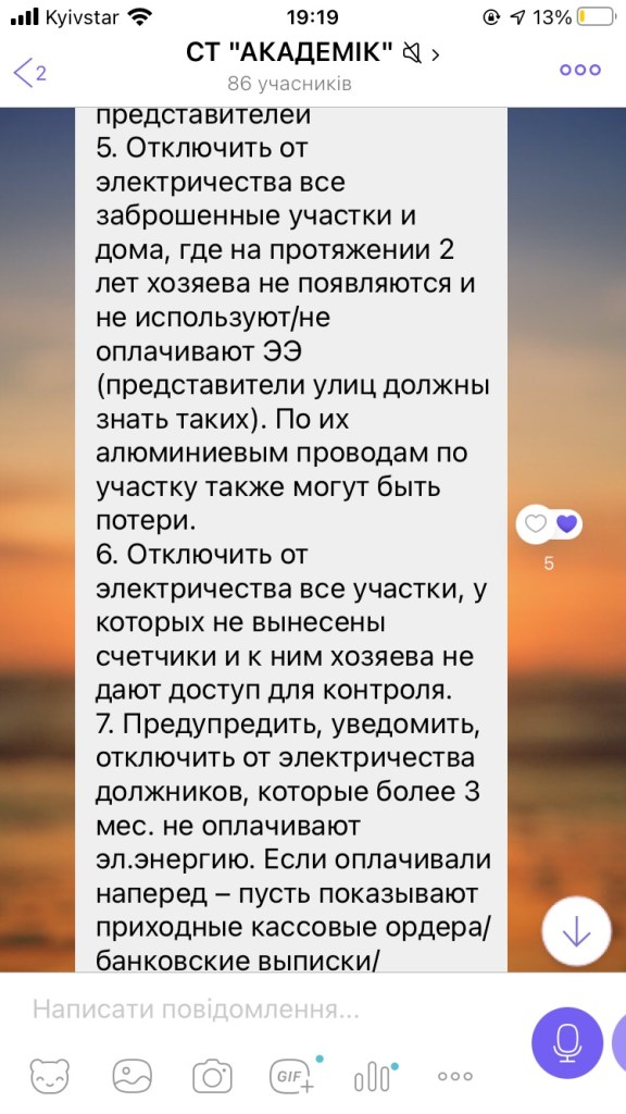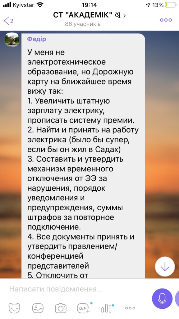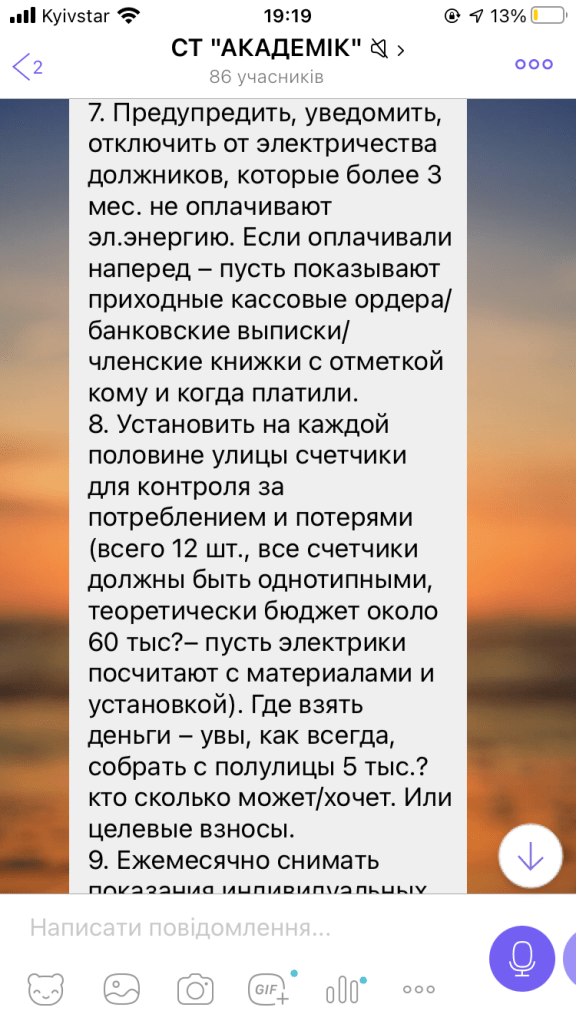 Мы (каждый) платим 1800 грн. членских взносов за год. То есть пять с половиной садоводов будут год собирать деньги на оплату месяца работы электрика. Для оплаты электрика за год необходимо собрать членские взносы 66,7 участков.