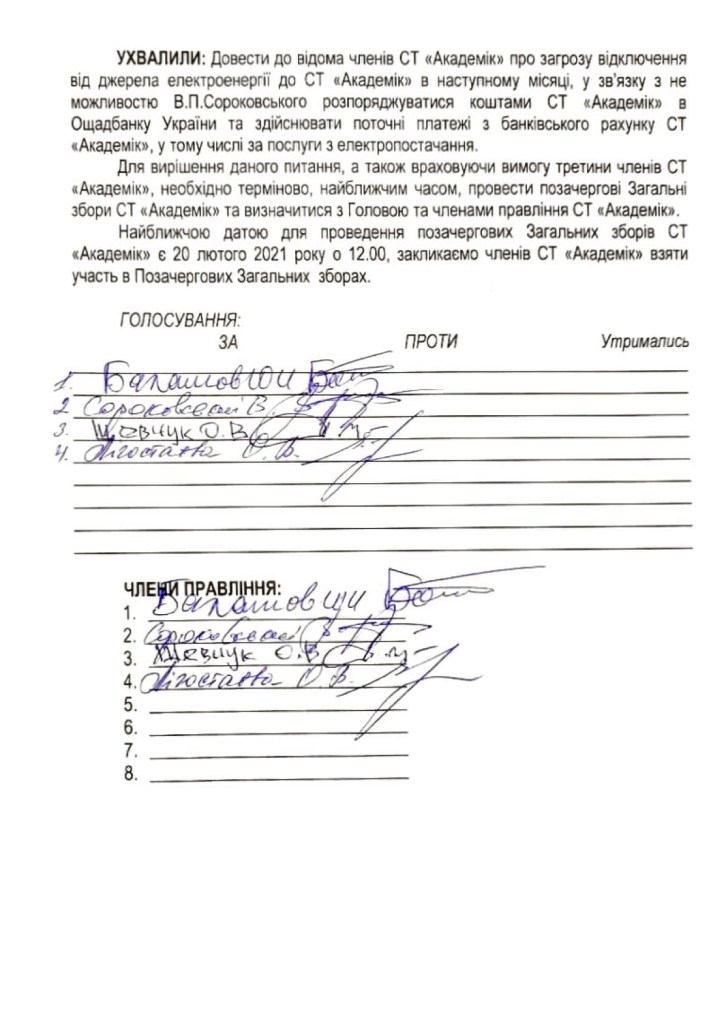 One thought on “Протокол засідання №35 Правління СТ «Академік» від 16.02.2021 року